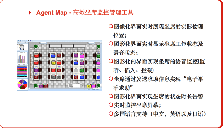 座席状态显示功能是方便座席之间可以互相看到对方当前的状态,便于实现话务转接、话务监听等功能。